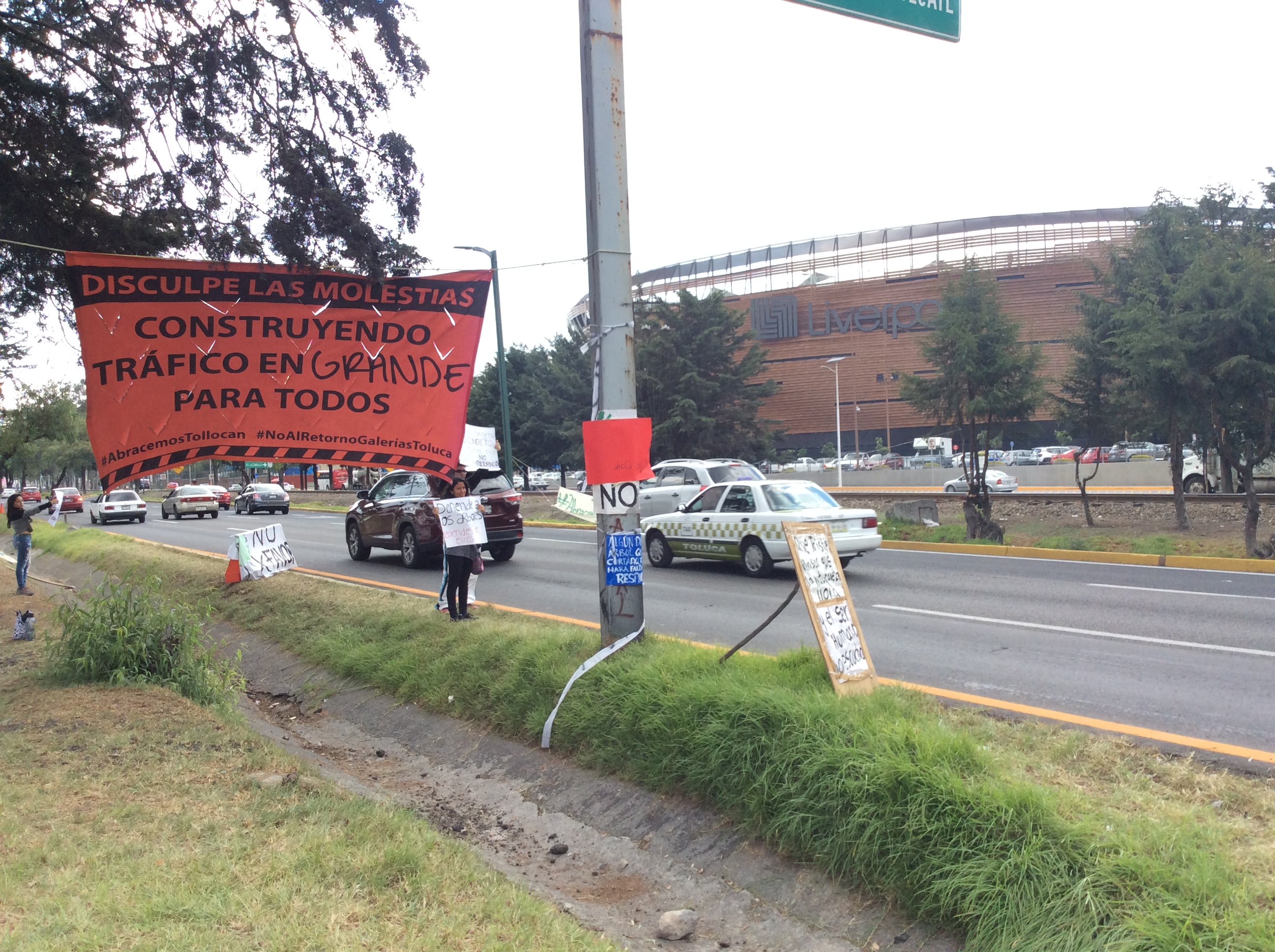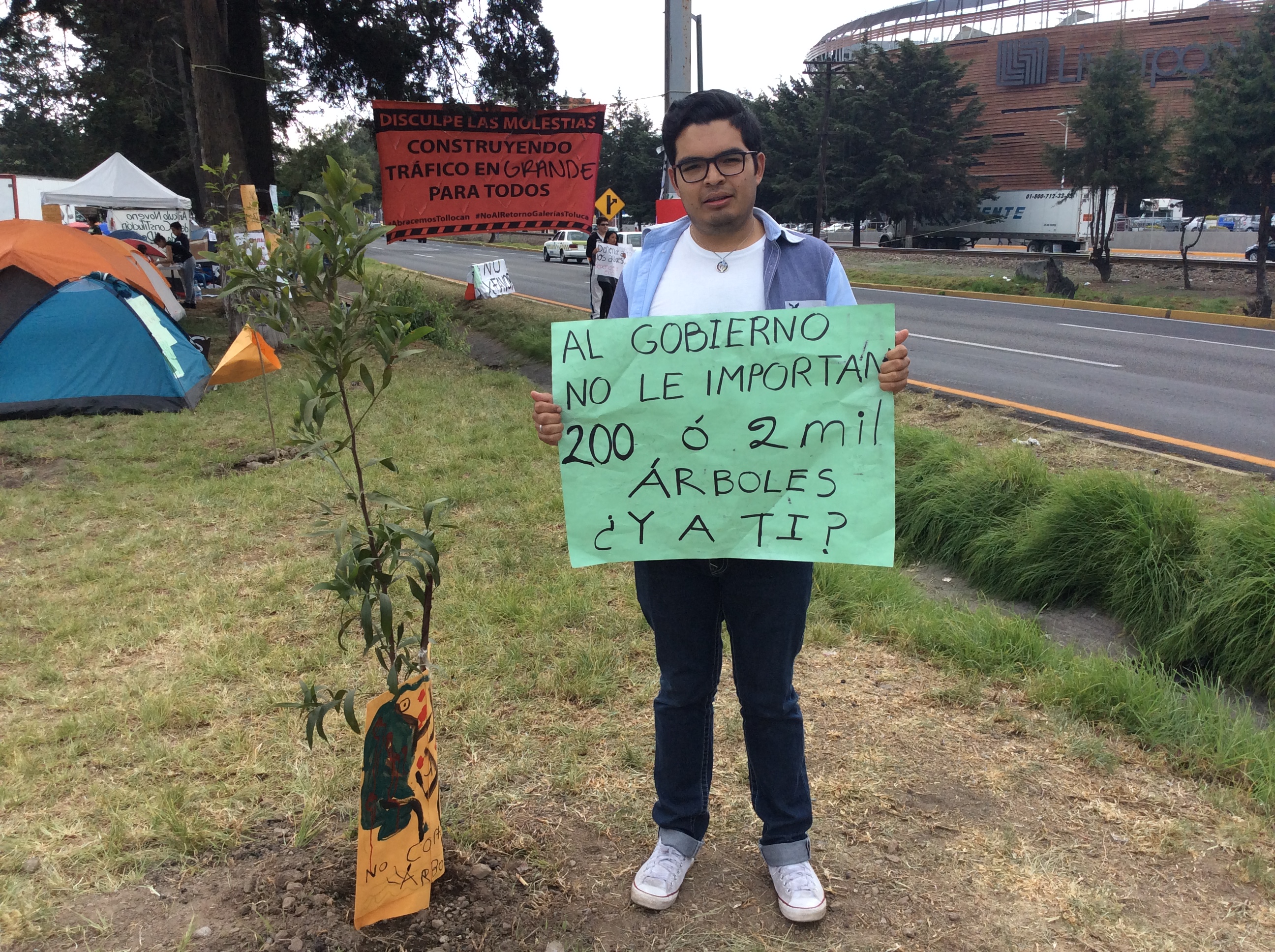 Se cumplen tres días de resistencia civil para evitar que se talen 175 árboles de Paseo Tollocan para construir un paso a desnivel para uso exclusivo de la plaza comercial Galerías Toluca, obra descrita como “clasista, peligrosa y de poca utilidad pública” por la catedrática de la Universidad Autónoma del Estado de México (UAEM) Susana Bianconi.