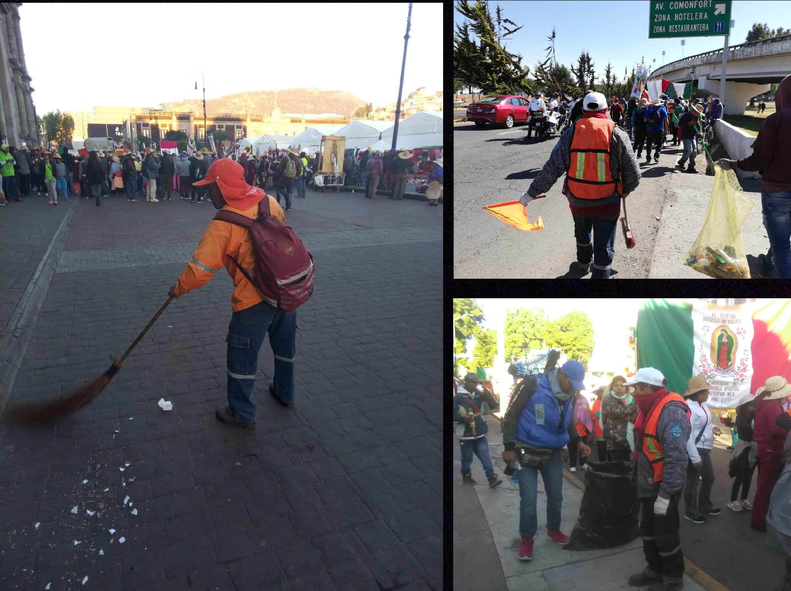 La dependencia municipal informó que una vez que la marcha al Tepeyac inició su trayecto, una cuadrilla de trabajadores acompañó al contingente para realizar la limpieza de la avenida José María Morelos y Pavón hasta su intersección con Isidro Fabela, de ahí sobre Paseo Tollocan hasta la avenida Comonfort.
