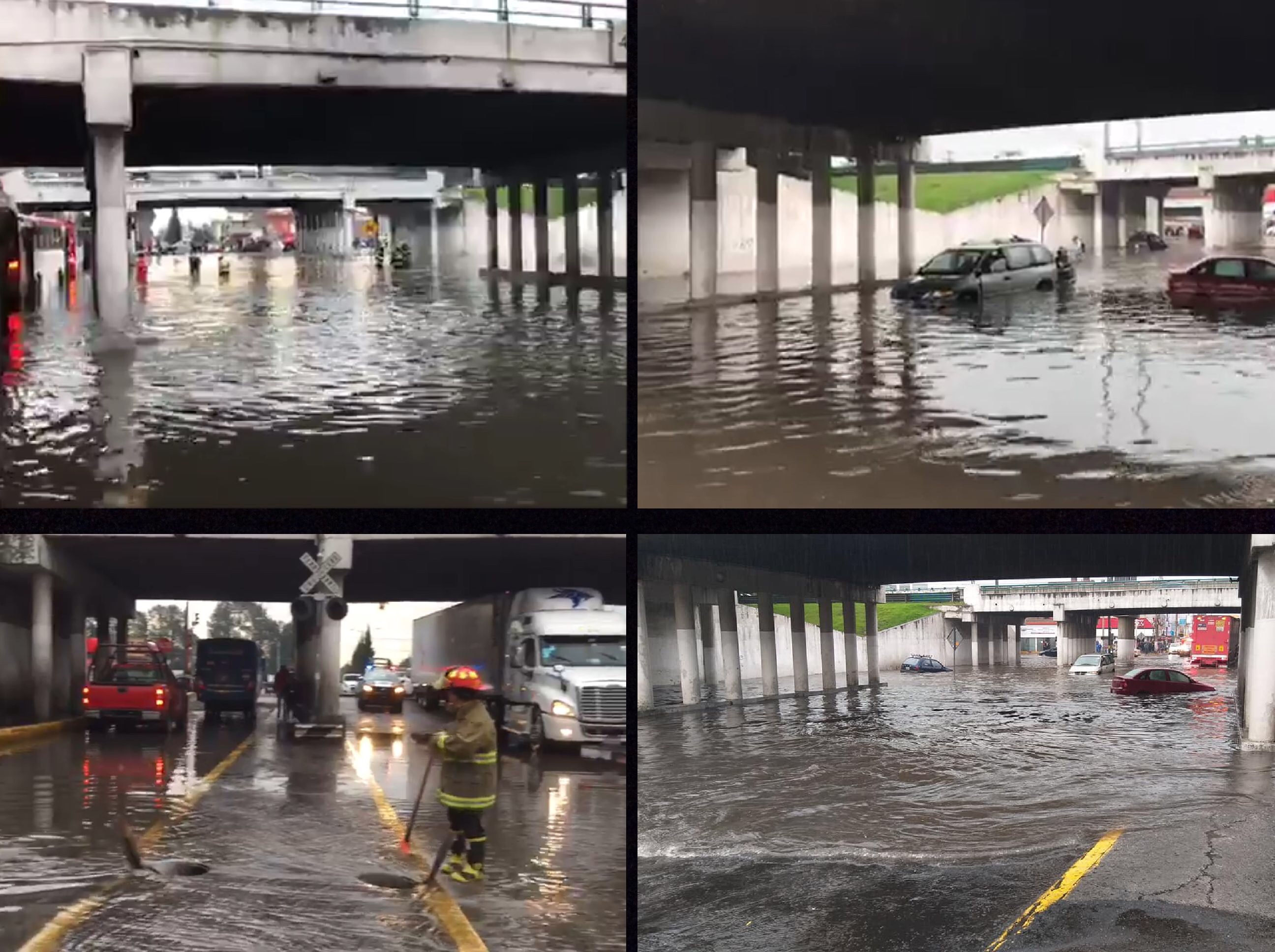 Uno de los puntos donde se documentaron encharcamientos severos es bajo el puente de Pilares, donde los vehículos quedaron bajo el agua por varios minutos hasta que cuerpos de auxilio llegaron al sitio.
