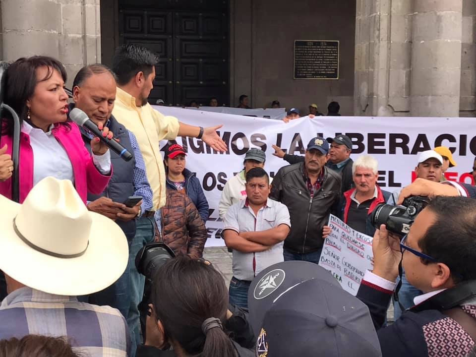 La alcaldesa perredista de Donato Guerra, Eliza Ojeda Rentería encabezó el bloqueo del primer cuadro de Toluca, junto con simpatizantes, para exigir la entrega inmediata de los recursos del Fondo Estatal de Fortalecimiento Estatal (FEFOM), que asciende a 37 millones de pesos.