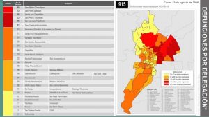 Asimismo, se han presentado 19 en la Sánchez; 18 en la Felipe Chávez Becerril; 16 en el Centro Histórico y Santiago Miltepec; 15 en Calixtlahuaca, La Maquinita, San Sebastián y San Juan Tilapa; 14 en Cacalomacán; 13 en El Cerrillo Vista Hermosa y Moderna de la Cruz; 12 en Adolfo López Mateos y San Antonio Buenavista; 11 en Del Parque, Independencia y Santiago Tlaxomulco; nueve en Árbol de las Manitas y San Felipe Tlalmimilolpan; ocho en Ciudad Universitaria y en Nueva Oxtotitlán; siete en Tlachaloya y Universidad; cuatro en Tecaxic y San Martín Toltepec, tres en San Cayetano Morelos y en Colón; y dos en la Metropolitana.