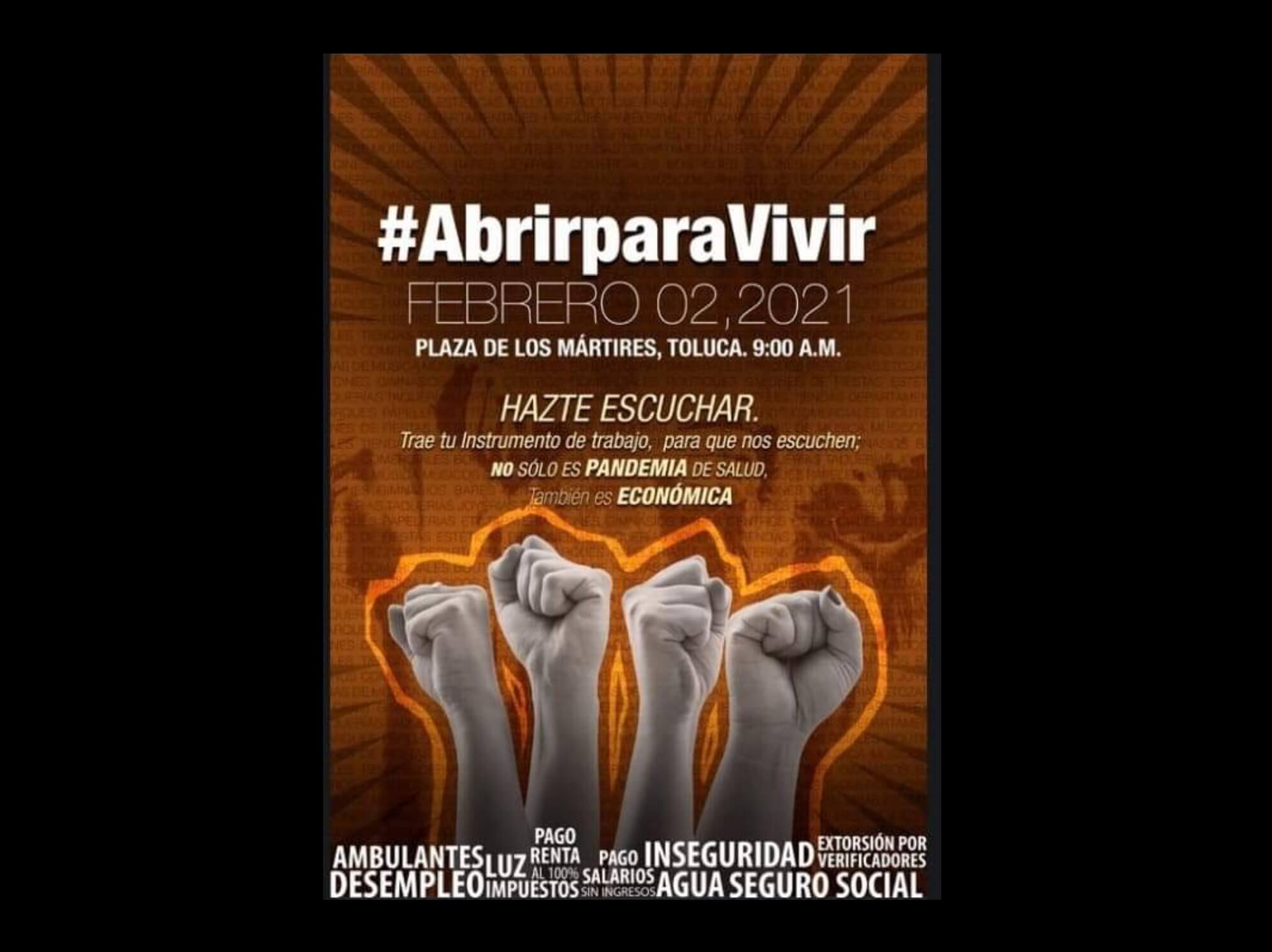 Tras la prolongación de las restricciones derivadas por la alerta sanitaria por COVID-19 que, de acuerdo con cifras oficiales, ha costado la vida de 2 mil 800 personas en Toluca, empresarios convocan a una nueva marcha para exigir la reapertura de negocios en la capital del Estado de Médico.