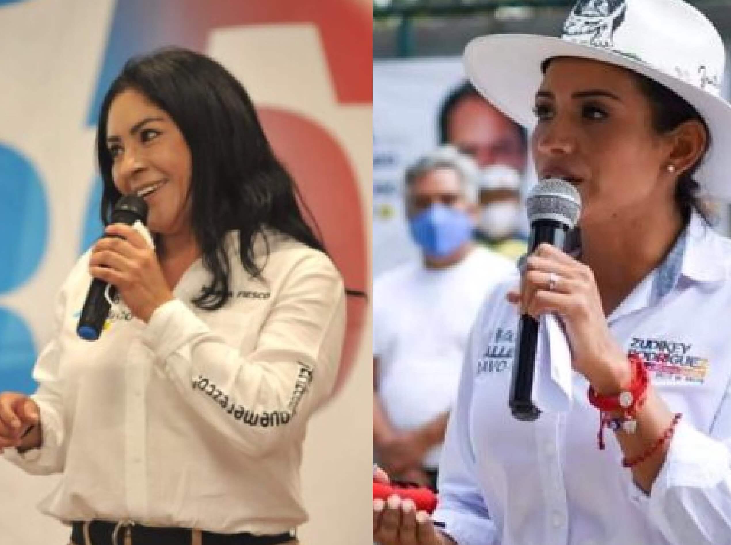 La coalición “Va por el Estado de México” integrada por los partidos PRI, PAN y PRD enfrentará un panorama adverso tras la salida de dos de sus candidatas a las alcaldías Karina Fiesco de Cuautitlán Izcalli y Zudikey Rodríguez de Valle de Bravo, la primera tras dar a conocer qué resultó positiva su prueba de COVID-19 y la segunda presumiblemente amenazada por el crimen organizado.