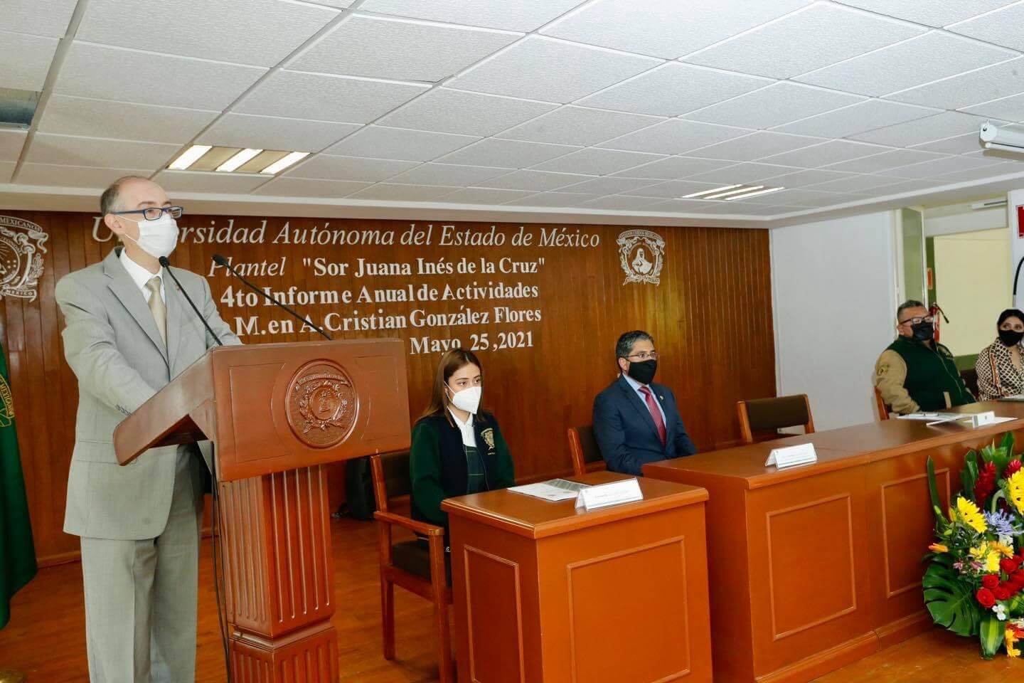 Al acudir al cuarto informe de actividades del director del Plantel de la Escuela Preparatoria “Sor Juana Inés de la Cruz”, Cristian González Flores, el rector reconoció el esfuerzo y crecimiento registrado por este espacio universitario, ubicado en el municipio de Amecameca. Destacó el aumento de su matrícula en casi 23 por ciento y su reacreditación en el Nivel I del Padrón de Calidad del Sistema Nacional de Educación Media Superior, con vigencia al año 2024.