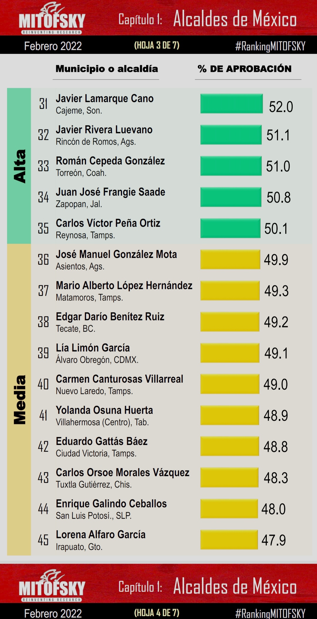 De acuerdo con el documento de Mitofsky, el alcalde de Toluca tiene una aprobación ciudadana apenas menor al 40 por ciento, durante el lapso del 20 de enero al 22 de febrero, los primeros dos meses de gestión municipal.