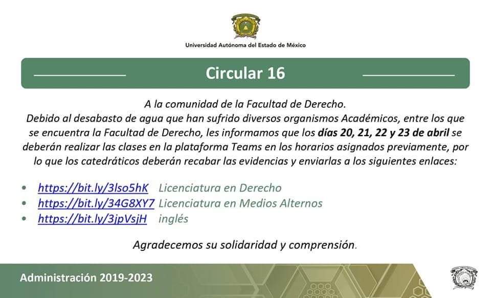Aunque no se especifica que otras facultades podrían estar suspendiendo clases, es de recordar que la facultad de Derecho se encuentra dentro de Ciudad Universitaria, donde se encuentran por lo menos un 60 por ciento de los planteles de la UAEM, los cuales podrían estar sufriendo de la misma carencia del vital líquido.