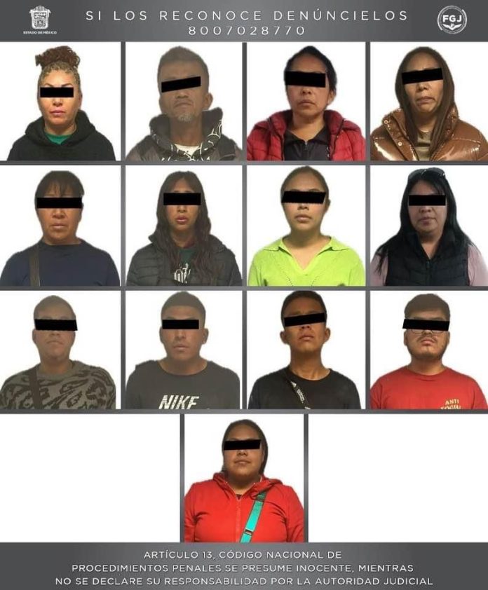 Una vez que estas personas fueron presentadas ante la autoridad ministerial, otras víctimas comparecieron y señalaron como probables responsables del delito de extorsión también cometida en las inmediaciones de la central de autobuses de la ciudad de Toluca, a quienes identifican como: Ruth “N”, Jorge “N”, Lennin Josafath “N”, Edgar “N”, Norma “N”, Ángel Isael “N”, Germán Antonio “N”, Jorge Sauriel “N”, María Verónica “N”, Vanesa “N”, Clara “N” e Imelda “N”; todas y todos los señalados posiblemente están relacionados con el mismo grupo delincuencial.