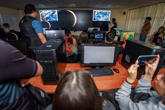 Asimismo, en espacios universitarios como la Facultad de Ciencias, el edificio de Servicios al Estudiante, en Ciudad Universitaria, y el Edificio de Rectoría, desde el Observatorio Meteorológico “Mariano Bárcena”, se observó este fenómeno a través de telescopios y lentes certificados para que personal universitario y el alumnado pudieran apreciarlo. En tanto, la Facultad de Geografía contempló este eclipse en el Laboratorio Nacional de Observación de la Tierra (LANOT), donde se siguió la transmisión universitaria y la de la Administración Nacional de Aeronáutica y el Espacio (NASA) de los Estados Unidos.