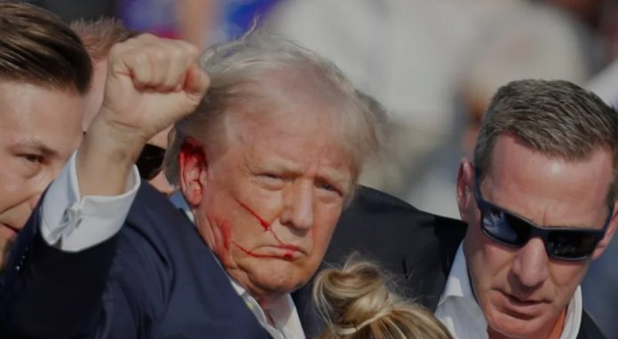 De camino hacia la camioneta que lo llevaría fuera del evento político, Trump levantó el puño hacia sus simpatizantes para mostrar que se encontraba bien mientras sangraba de la oreja