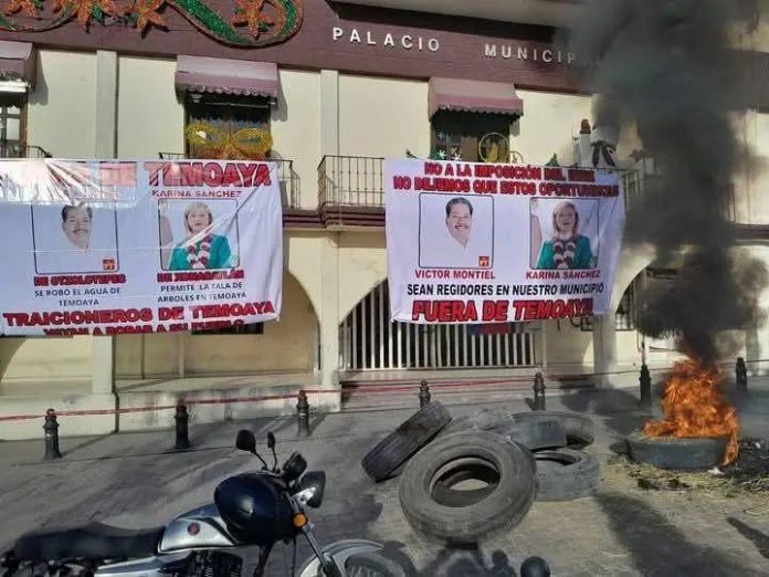 “Fue aterrador lo que viví durante seis horas, algunos vecinos llevaban garrafones con gasolina, inclusive me echaron con la consigna de quemarme sino firmaba mi renuncia, todo esto frente a la policía municipal de Temoaya que no hizo nada”, narró Victor Manuel Montiel, regidor.