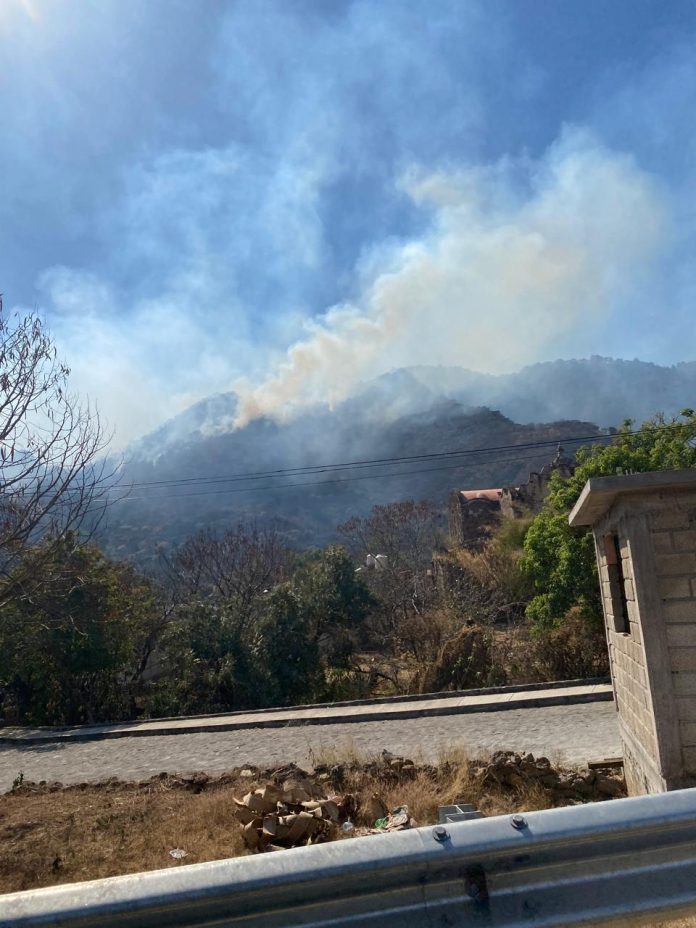 El siniestro inició la tarde de este sábado en el monte ubicado a un costado de la carretera Tenancingo -Teneria – la Cumbre y que conecta con el Municipio de Malinalco.
