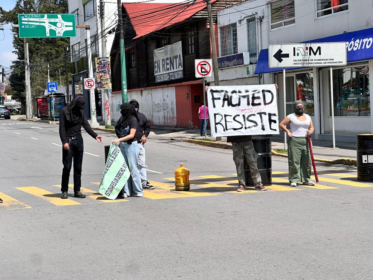 Los jóvenes cerraron por algunas horas la vialidad de Tollocan, poco antes del hospital “Mónica Pretelini”, a raíz de que no pudieron realizar una mesa de trabajo extraordinaria programada para este día.